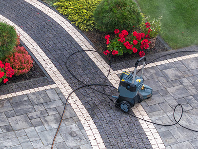 A stylish stamped concrete driveway with weather-resistant finish and clean edge forms.